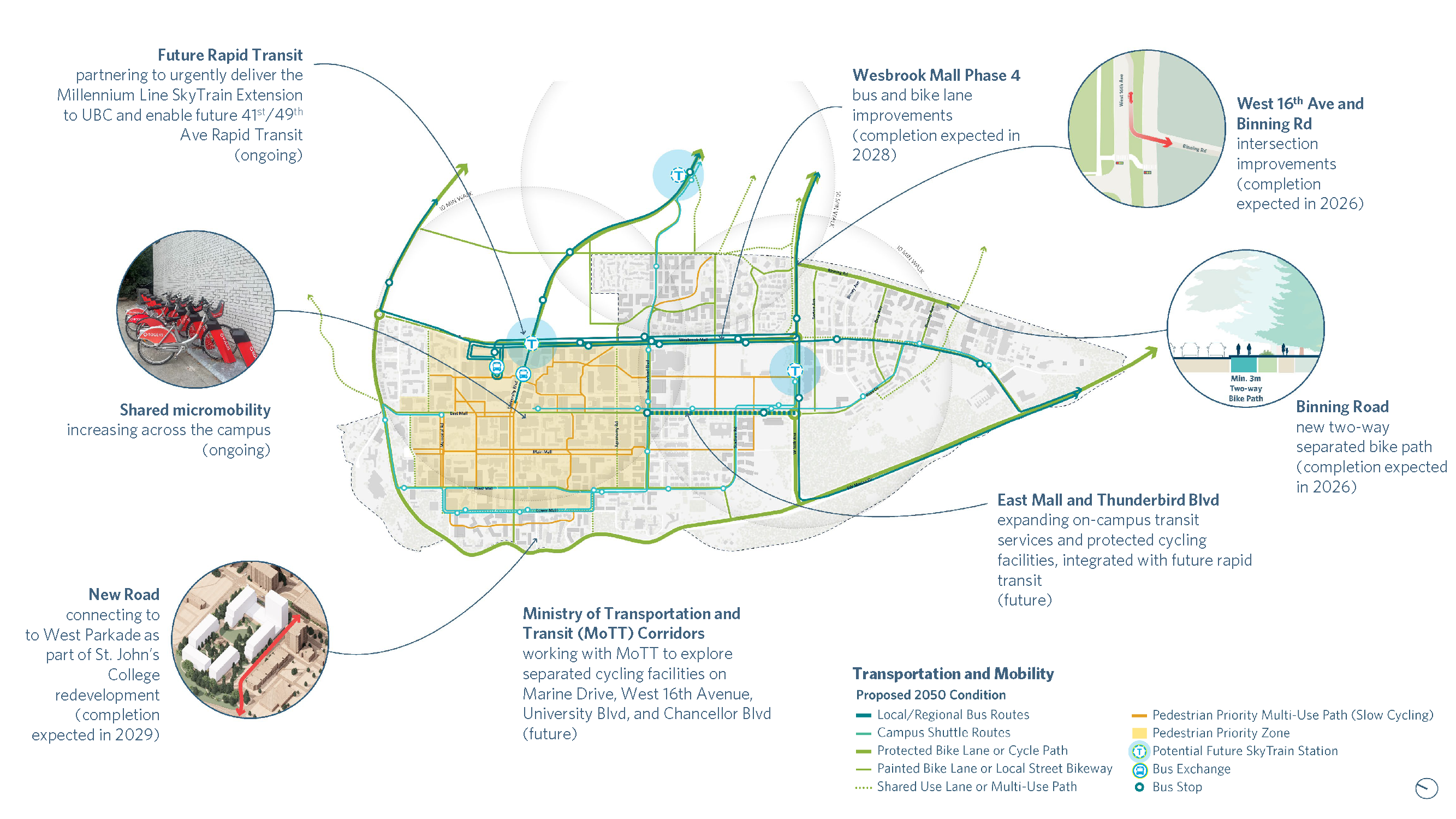 Updated plans and strategies will include guidance for current and future academic development projects, and new policy development and project delivery direction for climate action, biodiversity, the transportation network and SkyTrain, open space, amenities and Musqueam presence.